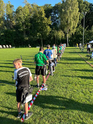 Auch dieses Jahr haben sich unsere Bogenschützen wieder sehr auf das Fackelturnier in Scheyern gefreut. Doch auch wenn bei diesem Turnier der Spaß im Vordergrund steht, will Schießen im Dunkeln vorher geübt sein! Deshalb haben wir auch dieses Jahr vor dem Turnier wieder ein Fackeltraining auf unserem Bogenplatz veranstaltet. Aufgrund ein paar kurzfristiger Ausfälle sind wir diesmal leider nur zu zehnt gefahren. Aber nächstes Mal klappt`s mit Sicherheit wieder mit einer größeren Mannschaft. Wobei man ja in allem auch was Gutes sehen kann: Unseren Schützen blieb nämlich dann mehr von den mitgebrachten Köstlichkeiten. Vielen Dank hier an unsere „Mutti“ Katja und unsere Sabrina: Türkisches Brot mit Hackfleischfüllung, Fleischpflanzerl und Apfel-Pudding-Schnecken … so kann man in ein Turnier starten. Nach dem ersten Durchgang mit zehn Passen je drei Pfeilen wurden wir in der Pause dann auch noch mit Bratwurstsemmeln, Steaksemmeln und Grilltellern vom Schützenverein Scheyern 1862 e. V. verköstigt. Nun hieß es warten auf die Dunkelheit. Mit einer Lampe an der Schießlinie und zwei Fackeln an den Scheiben ging es in die zweite Runde. Das Gold hier noch zu sehen, ist da doch deutlich schwieriger als im ersten Durchgang. Die Ergebnisse konnten sich wirklich sehen lassen: Von unseren zehn Teilnehmern holten sich sieben eine Medaille, davon drei unsere Jugendlichen. Gratulation an dieser Stelle! Für jeden Verein gab`s wieder ein 5 l Scheyerer Bierfass, dass wir uns demnächst sicher schmecken lassen werden. Vielen Dank für die super Durchführung und Organisation des Turniers an die Veranstalter. Wir freuen uns schon auf nächstes Jahr. Die Gruppe 1 begann am Samstagvormittag mit folgenden Klassen: - Recurve Schüler A m/w, B m/w, C m/w - Compound Schüler A m+w und B m+w - Blankbogen Schüler A m/w Am Samstagnachmittag folgte der nächste Wettkampf mit der Gruppe 2 in den Klassen: - Recurve Jugend m/w - Compound Herren, Damen, Master m/w, Senioren m, Jugend m+w, Junioren m+w - Blankbogen Herren, Damen, Master m/w, Senioren m, Jugend m+w In der Gruppe 3 am Sonntag schossen ausschließlich Recurveschützen in den Klassen Herren, Damen, Master m/w, Senioren m/w, Junioren m/w Ziel des Turniers war es wie immer, eine möglichst hohe Ringzahl und somit die Qualifikation für die Bayerische Meisterschaft WA 720 2025 zu erreichen. Gleichzeitig sollte aber auch der Spaß nicht zu kurz kommen. Die hochsommerlichen Temperaturen sorgten für eine anstrengende, aber trotzdem schöne Wettkampfatmosphäre. Insgesamt 27 Zielscheiben in den Distanzen von 15 m bis 70 m mussten für diesen Wettkampf positioniert und zwischen den Wettkämpfen umgestellt werden. Auch die Helfer beim Pfeile suchen und das Verpflegungsteam hatten alle Hände voll zu tun. Die Arbeiten, die in den Tagen zuvor zu stemmen waren, hatten es in sich. Das positive Feedback, das wir erhalten haben, zeigt uns, dass unsere Helfer diese Veranstaltung durch großen Fleiß und Ausdauer hervorragend ausgerichtet haben. Dafür ein großes Dankeschön. Ebenso danken wir sehr herzlich: - den Kampfrichtern Nicole und Stefan Fent, sowie Günter Kirschneck, die an beiden Wettkampftagen für einen reibungslosen und fairen Wettkampf gesorgt haben - dem 1. Bezirksschützenmeister, Alfred Reiner, für seine Begrüßung bei der Eröffnung der Veranstaltung und seine Unterstützung bei der Siegerehrung - der Bogenreferentin für den Schützenbezirk Oberbayern, Monika Verheij, die leider nicht anwesend sein konnte, die Datenverarbeitung im Vorfeld aber hervorragend durchgeführt hat - allen Schützen für ihre Teilnahme, ohne die diese Veranstaltung gar nicht erst möglich wäre - unseren Sponsoren auf der Siegerehrungswand für ihre finanzielle Unterstützung Ganz besonders gratulieren wir zwei unserer Schützen: Eckhard Busanny hat sich in der Recurve-Seniorenklasse mit 603 Ringen den 2. Platz geholt. Maria Haberl hat sich in der Klasse Compound Master weiblich den 1. Platz geholt. Herzlichen Glückwunsch zu euren großartigen Leistungen. Die Gesamtergebnisliste steht unten zum Download zur Verfügung. Die Fotos der Meisterschaft können über den Link heruntergeladen werden.